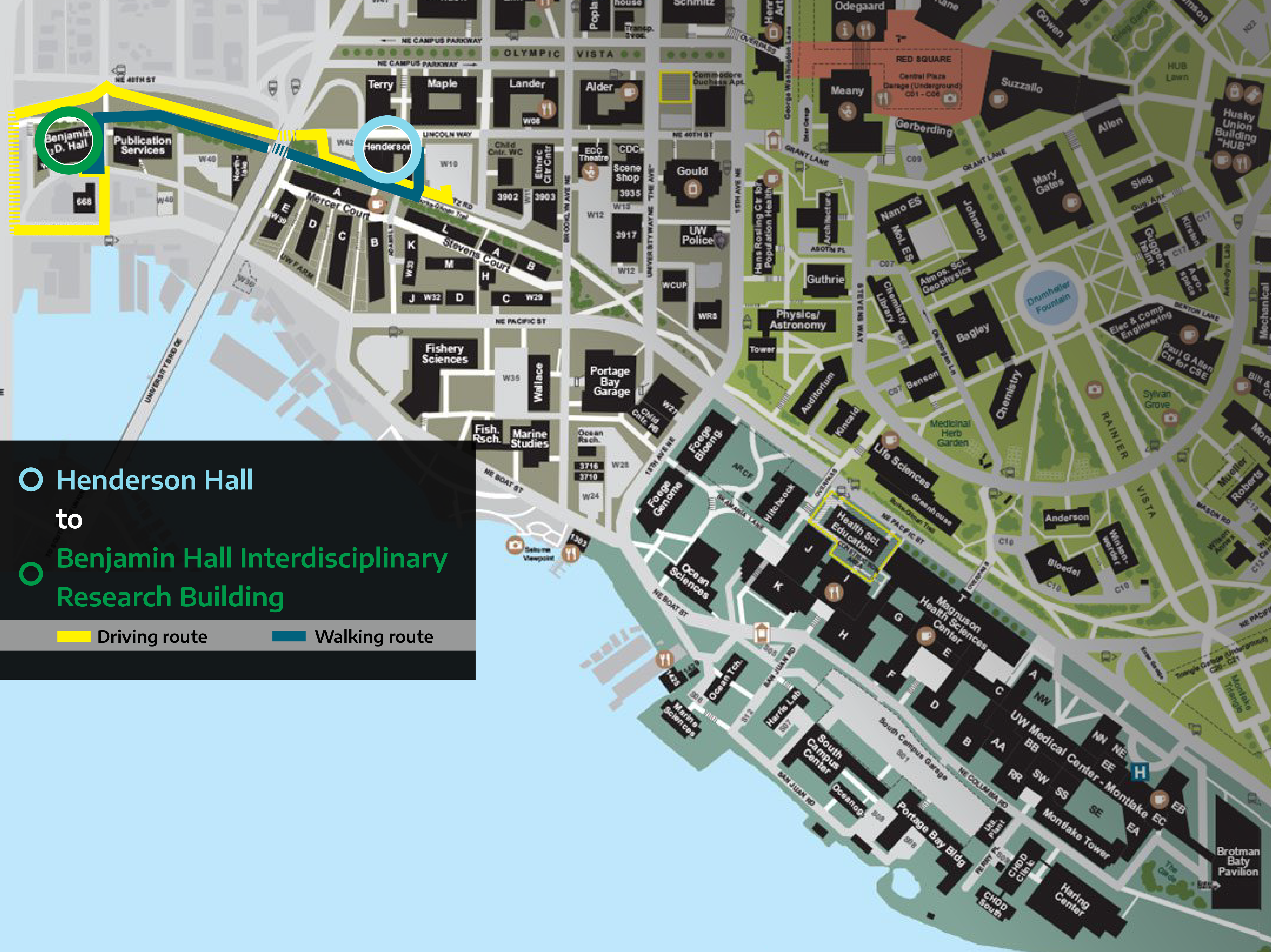 Street address: Benjamin Hall Interdisciplinary Research Building University of Washington 616 NE Northlake Place Seattle, WA 98105 Parking Two-hour street parking is available along NE Northlake Way and the surrounding area.